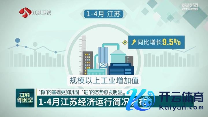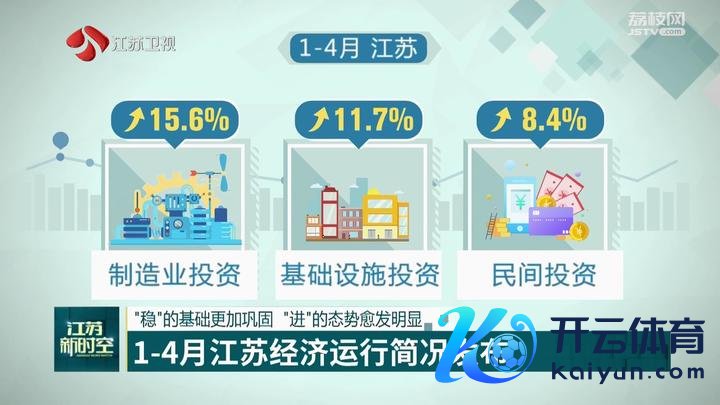 开云体育 video 5月24日,省统计局发布1-4月全省经济运转简况,从数据来看,江苏经济运转“稳”的基础愈加空隙、“进”的态势愈发显著。 工业方面,1-4月,全省范畴以上工业增多值同比增长9.5%。其中,贪图机、通讯和其他电子建筑制造业同比增长12.8%,汽车制造业增长14.3%。 固定金钱投资方面,1-4月,全省固定金钱投资同比增长4.8%。其中,制造业投资同比增长15.6%,基础武艺投资同比增长11.7%,民间投资同比增长8.4%。紧要样貌拉行动用显著,1-4月全省10亿元以上样貌个数