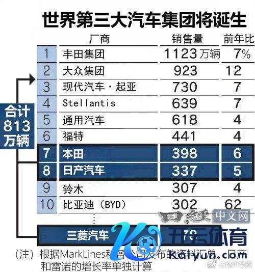 日产、本田以及三菱归拢后的汽车年销量将起始800万辆,这将使新公司置身全球最大的汽车制造商之列,但仍低于丰田汽车(2023年销量为1120万辆)和德国汽车制造商大众汽车(2023年销量为920万辆)。