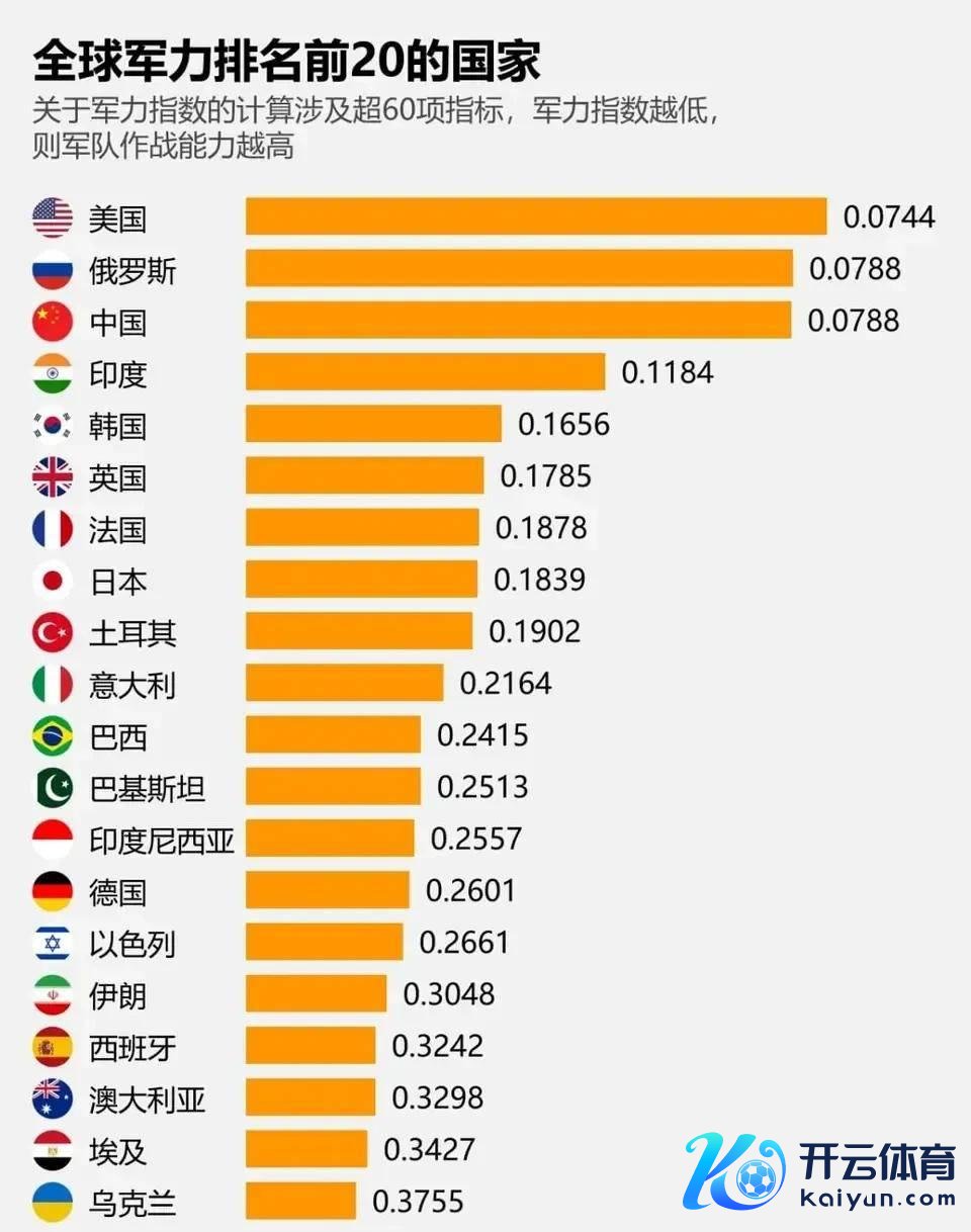 数值越低,标明武力水平越高。在相干榜单中,好意思国经久位列榜首,俄罗斯永恒排行第二,而我国则长年处于第三的位置 。