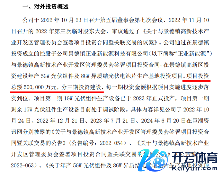 记者发现,上述光伏技俩始于2022年10月,光伏技俩原接洽的投资总金额为50亿元,分三期投资建造。但这笔投资也令成本市集产生质疑,其中枢就在于正业科技并不具备50亿元的投资智商。据该公司2022年的半年报表示,正业科技总资产仅为19.53亿元,50亿元投资是公司总资产的2.56倍。