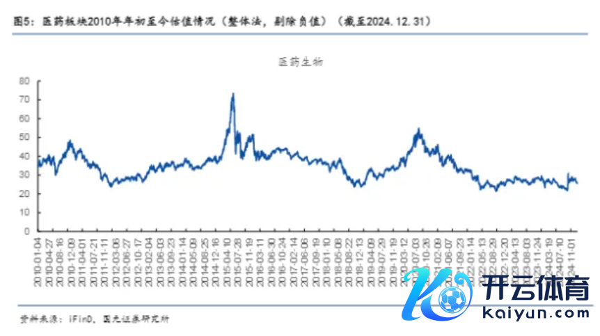 2010年于今,医药板块估值水中差别在2011年底和2018年底达到最低位,最低位为25倍足下,当今医药板块估值为25倍,再次处于近十五年最低水平。