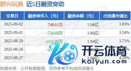 本站音信,9月2日,群兴玩物(002575)融资买入3141.85万元,融资偿还2393.24万元,融资净买入748.61万元欧洲杯体育,融资余额1.94亿元。
