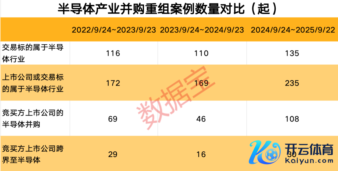 数据夸耀,2024年9月24日以来,A股市集半导体产业(上市公司或并购标的属于半导体行业)的并购重组事件数目朝上230起,较上一年增多近四成。按参与扮装诀别,以“竞买方”扮装参与半导体产业并购重组的公司数目朝上百家,较上一年翻倍。“并购六条”发布以来,当作“竞买方”跨界并购半导体产业的上市公司数目约为上一年的2倍,包括友阿股份、绿通科技、福达合金等。